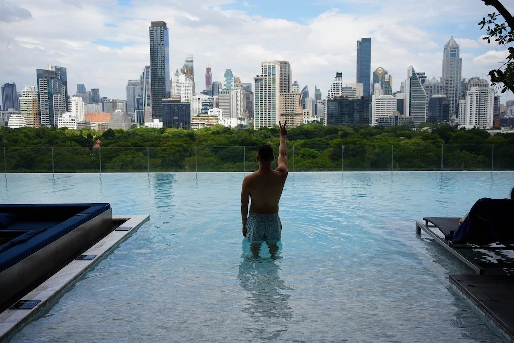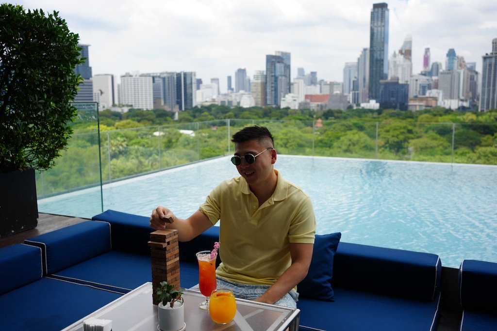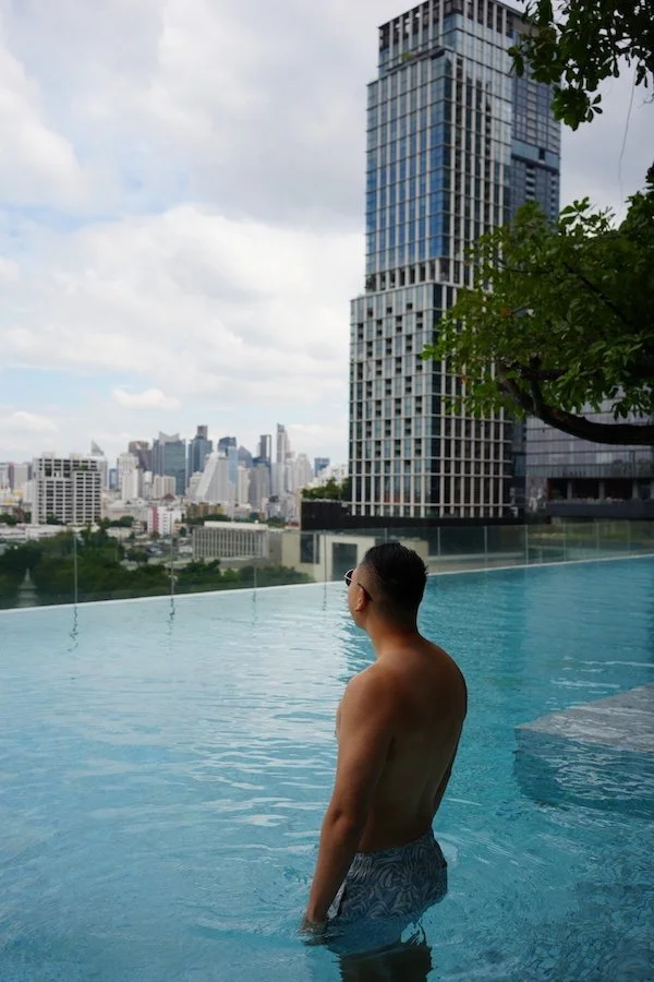 The infinity pool and nearby fitness centre is another highlight, offering panoramic views of the Bangkok skyline and Lumphini Park.