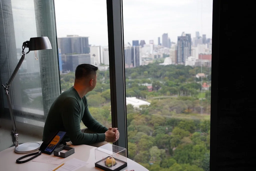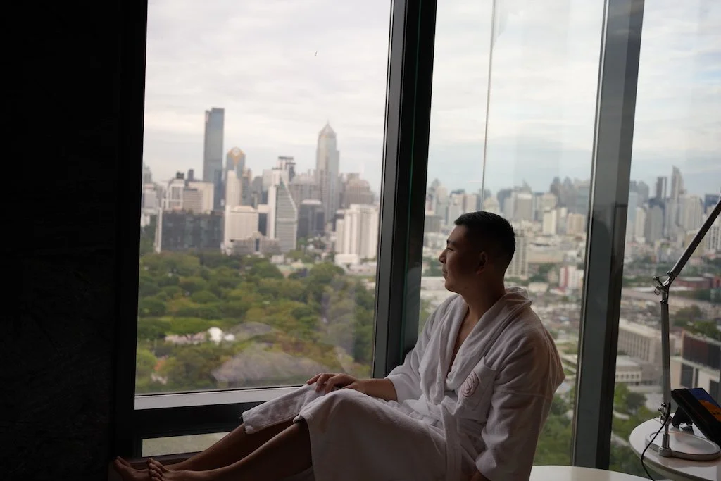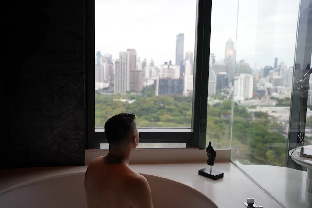 The room was spacious and beautifully styled, with floor-to-ceiling windows overlooking Lumphini Park and a giant bathtub perfectly positioned for soaking in the view. The design details struck the perfect balance between contemporary chic and understated elegance - a space where you could easily unwind after a day exploring the city.